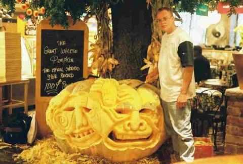 this was taken in Chicago my Artist Steve dahlke who carved this 1009 pound pumpkin . The pumpkin was grown in wheatridge colorado and transport to chicago this carving has three faces and one giant spider each year foodlife looks for the biggest pumpkin last years pumpkin 1059 pound in wisconsin