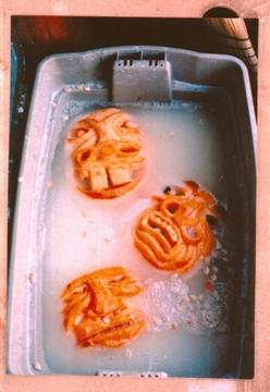 these three pumpkins were carved in late september of last year. these pumpkin faces were saoking in this pumpkin dunk solution for 3 weeks once pulled from container they lasted another two weeks