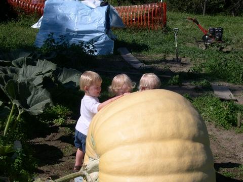 I tried to get the kids to move the pumpkin out of the patch. I guess Ill have to wait a few years.