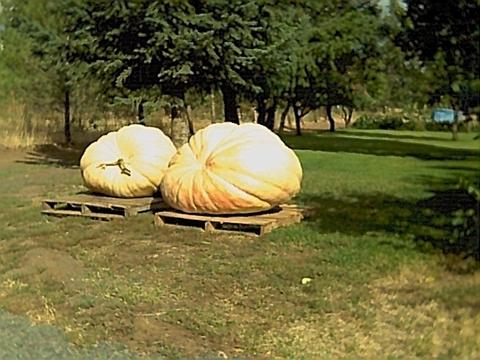 Her's our Spokane Interstate Fair Pumpkins, My daughters is on the left (695 x Self Handy)it weighed in at 457#, on the right is my pumpkin (651 Gadberry X Self) it weighed in at 628#. There was a pumpkin bigger, but it should have be DQ as it had a big old split in the bottom and right side it leaked guts all over the stage ater 1 day, theres been a lot of that kind of thing going on lately!!!