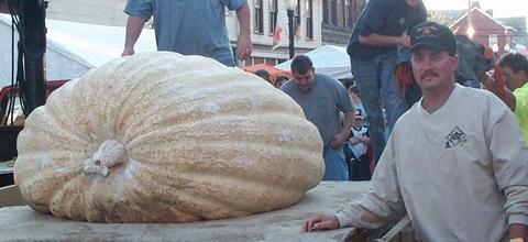 Winston waiting to weigh his monster pumpkin