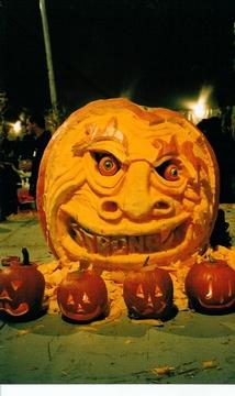 this was carved in wisconsin friday night at a private firm . steve dahlke carve 75 smaller pumpkins and one giant pumpkin. This was grown by casey neuvile