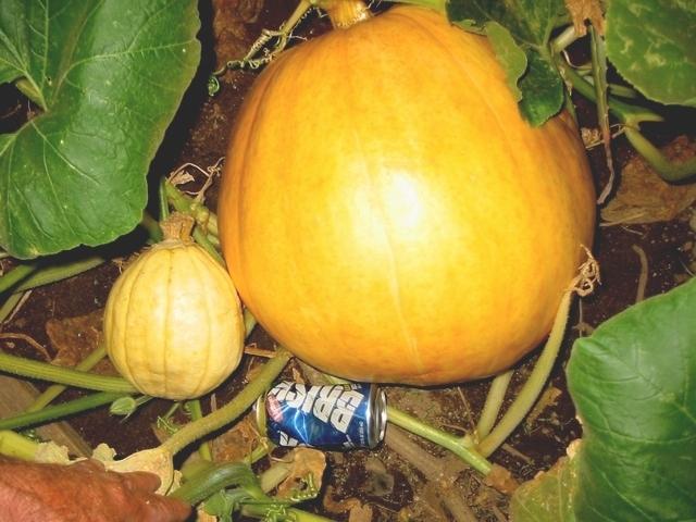 This plant grew unexpected. I am not even sure what it is. It's yellow, but now starting to look like a pumpkin.