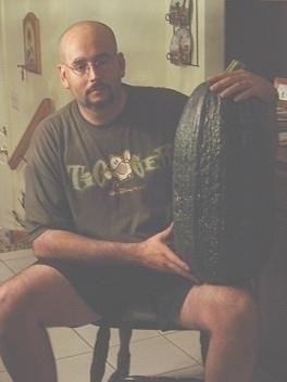 Picture of a 30 pound marrow that I grew. This was my first attempt at growing marrows. I obtained the seed from Bernard Lavery, who has the world record for marrow at 108 pounds.