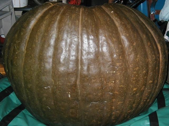 I've carved a few pumpkins but I've never tried my hand at sculpting. So I thought I would try it on my 410 lb squash from this year. I started with a nice green canvas.