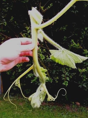 Can you see the female that I wanted to pollinate? It's just after the little curve in the vine at the tip. Won't happen now...