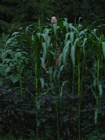 On a 10 foot ladder peeking over my Jala maize. Little disappointed to see a few tassels forming on some of them at 13 & 12 feet. I was hoping to get one in the 20 feet range.