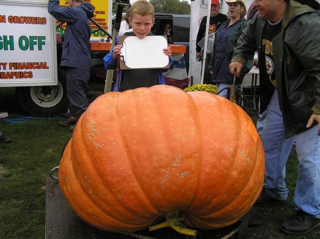 10 year old Mr DePasquale grew this 632.5 pound pumpkin which earned him 16th place at the Frerichs Farm 2005 weighoff.