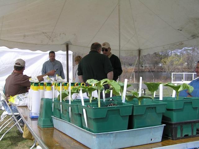 Thats Ron Newman (back to the picture in black T shirt) of the RI Department of Enviormental Management. He made a very informative presentation to all attendee's of the SNGPG Meet + Greet at Frerich's Farm on April 15, 2006. All the AG Giant Pumpkin plants were given to some lucky growers at the free raffle. Everyone went home with something.