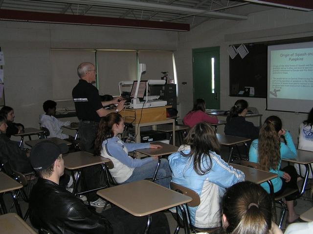 Steve Connolly made his Giant Pumpkin Powerpoint presentation to 120 students at Norfolk County Agricultural High School in Walpole, MA, then presented it again at the SNGPG Meet + Greet at Frerich's Farm in Warren, RI on April 15, 2006.