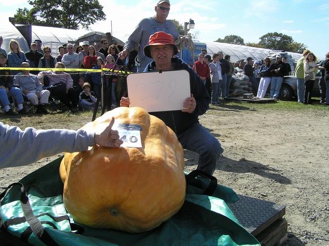 Paul Gaucher of Rhode Island displays his 279 pound Giant Pumpkin at the Frerich Farm SNGPG Weigh-off on Oct 7th.
