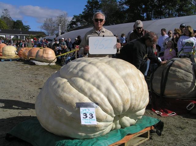Wes Dwelly of Oakham, MA displays his 962 pound Atlantic Dill Giant Pumpkin at Frerich Farms 2006 Giant Pumpkin SNGPG Weigh-off.
