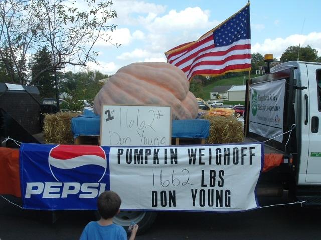 Don Young's pumpkin on the float for the parade through downtown Anamosa. Pumpkinfest is a BIG event, drawing many thousands of visitors to Anamosa. This year they got a real treat!