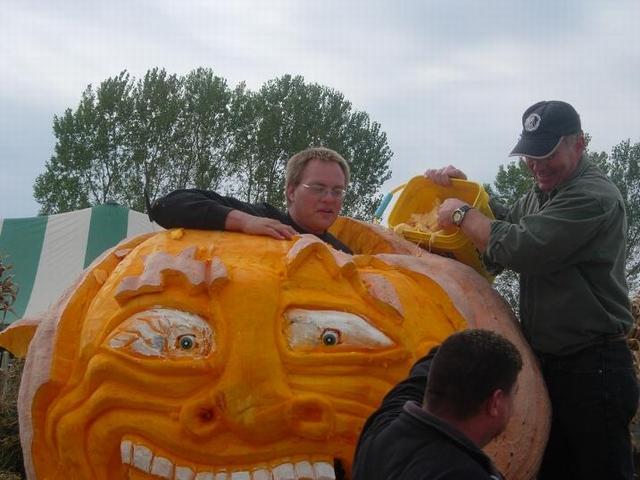 after carving this gaint pumpkin i removed the lid and started cleaning out the pumpkin seeds
