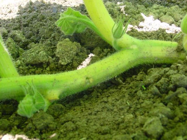 1/4 inch hole about 12 foot out on main vine. It is only about one foot from the tip. Plant tip has stopped growing...but the secondaries are going strong.
