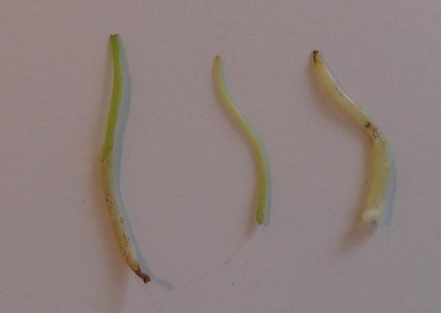 Roots seperating into two pieces a core and an outer layer.