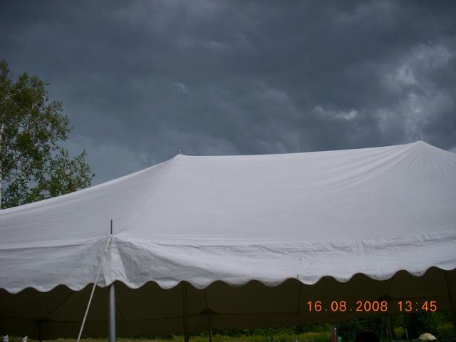 Clouds begin to roll in over the three large tents. Was this just a passing shower?