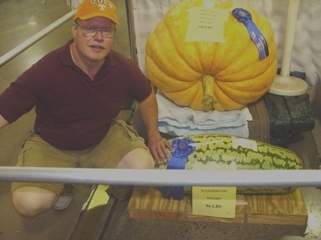 This is my Carolina Cross winning entry for the largest watermelon at the Tennessee Valley Fair. They weighed it at only 96 pounds but no one else brought in a bigger one so I guess a win is a win.