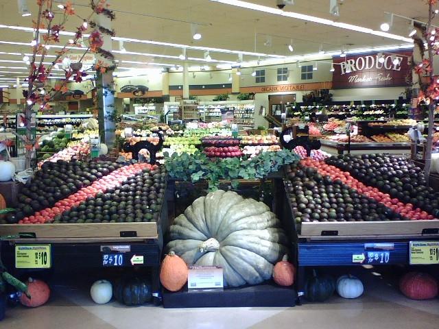 Now let me tell you...... TheBiZ knows how to display......check out what he did with WiZ's Green Squash at the local grocery store....... Grow'em And Show'em