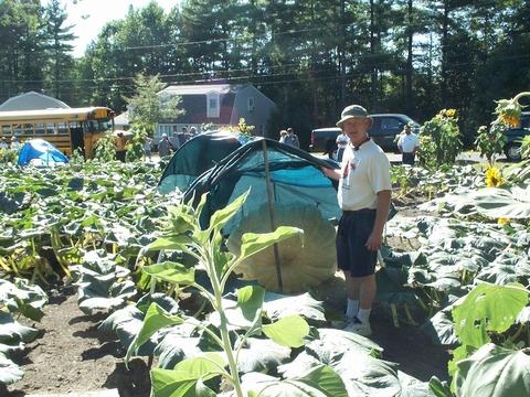 This is Peter Carter and a pumpkin on his 712 Kuhn 2000 plant. The pumpkin tapes over 600 pounds and just looks like it will weigh heavy.