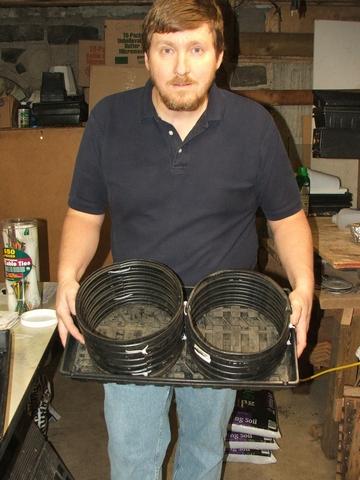 A 9" drain tile cut into 12" pieces. Reassembled with zip ties for each cutting when the plant is placed in the garden.