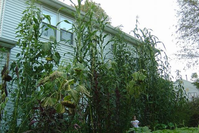 giant maize and giant amaranth plants