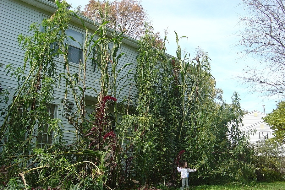 27 ft. pole next to ~23 ft. Uchima Grande Maize