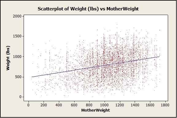 Mother weight vs Offspring weight 2005 to 2010 GPC