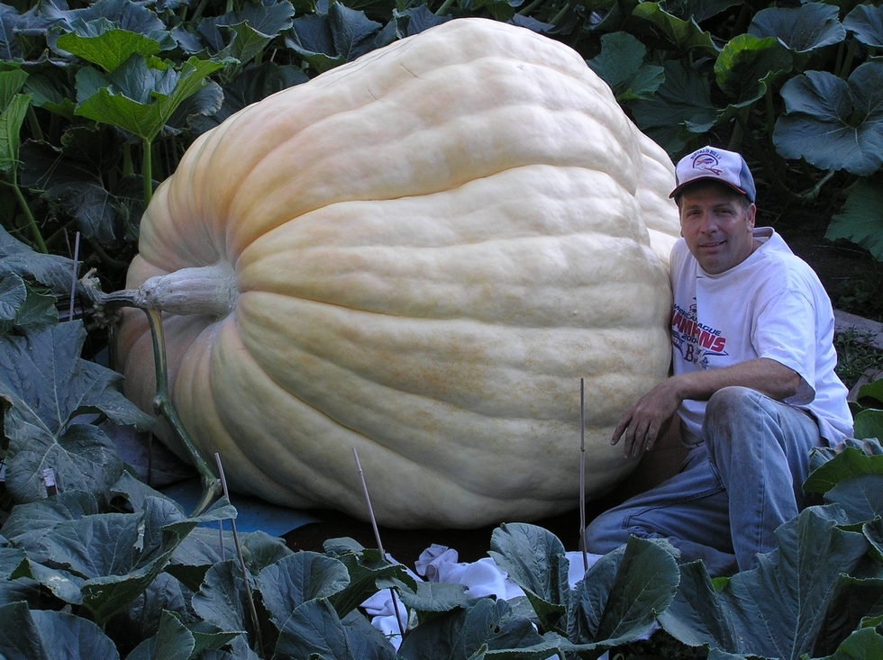 Here is the WR1725Harp x WR1810Stevens Cross grown by Ron Wallace. This is a very rare cross from the last two World Record Pumpkins. It had the genetic strength of the 1725 Harp seed and the massive bulk and thickness of the 1810 Stevens seed. There were only (18) of the 1810 seeds out there. A small pin hole discovered on 8/27 on the top of the pumpkin made it unofficial. A tough loss. Here are some of its weight gains. date lbs lb/day 7/24 361 35 7/31 629 38 8/9 1027 44 8/14 1269 48 8/21 1535 38 8/27 1745 34 8/30 1789 15