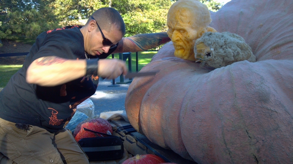 Master Carever Ray Villafane getting started on the World Record 1818.5 Bryson....... What will he create? Stay tuned for more!