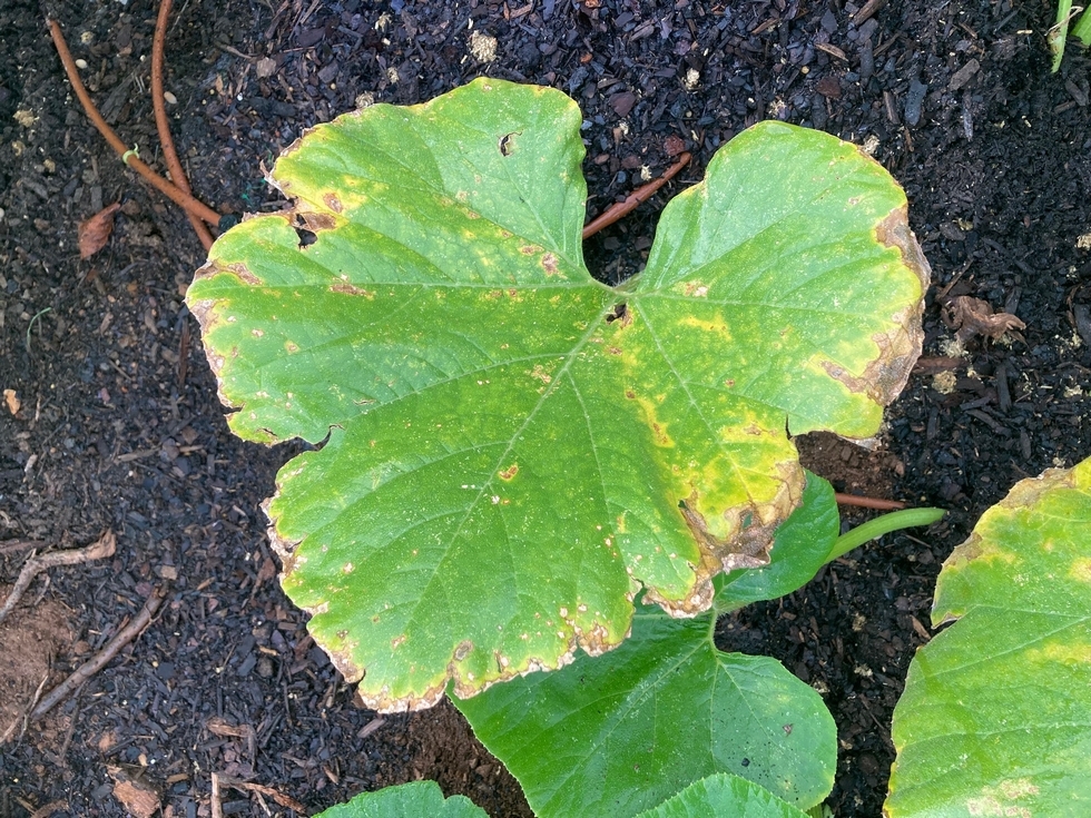 lesions on other plants in the garden. jarradhale variety pumpkin i think