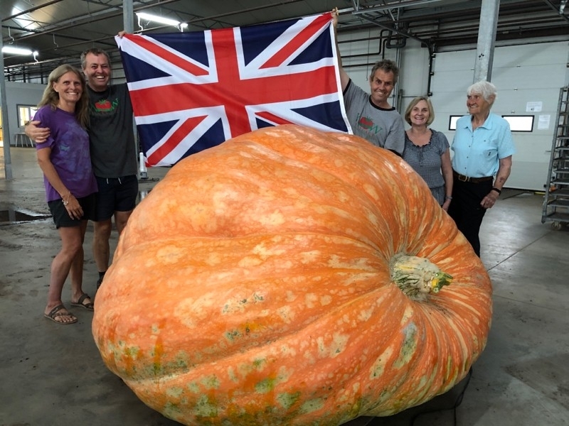 Congrats to Ian and Stuart Paton on their amazing grow. This is a history making pumpkin. Due to a small hole at the blossom end, they had to pull it early out of the patch and get a weight on it, to save those valuable seeds. An amazing fruit with lots of hard work put in to achieve. Oh and they have others still growing in the patch.....