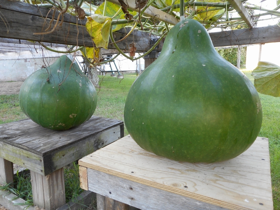 Large ribbed gourd with a smallish vine.
