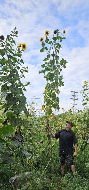 16'3" tall multi-headed sunflower