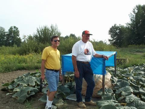 Bob Mathews, webmaster of the Pumpkin Nook website, joined us on our patch tour. It was great to get a chance to meet Bob! Also, Len is sporting one really cool shirt!!