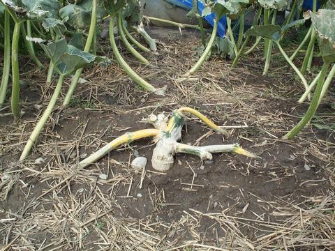 This is the stump of one of Joe's plants. Notice he mulches with straw.