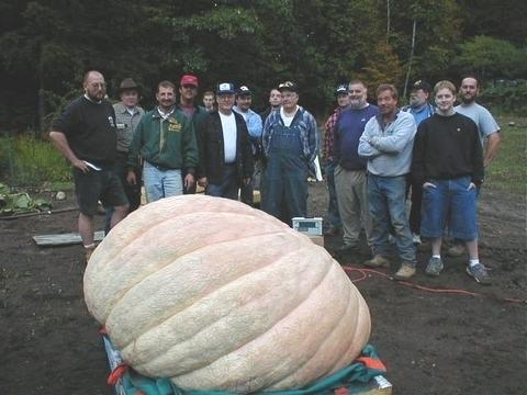 One of several photos showing everyone who helped harvest Jim Kuhns 1020 grown from his 712. What a day, and we thought our banner was certainly in order"Bring the record back to NH"...Wait till next year!