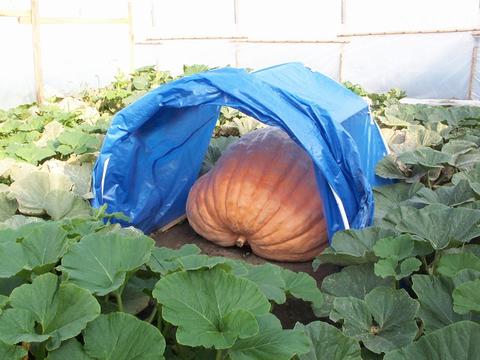 This is the blossom end of Alan's smaller pumpkin on a 723 Bobier plant.