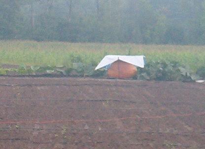 Bill Rodonis has an exceptional setup for growing giant pumpkins..and there were some giants to be seen through the fog, drizzle and showers.