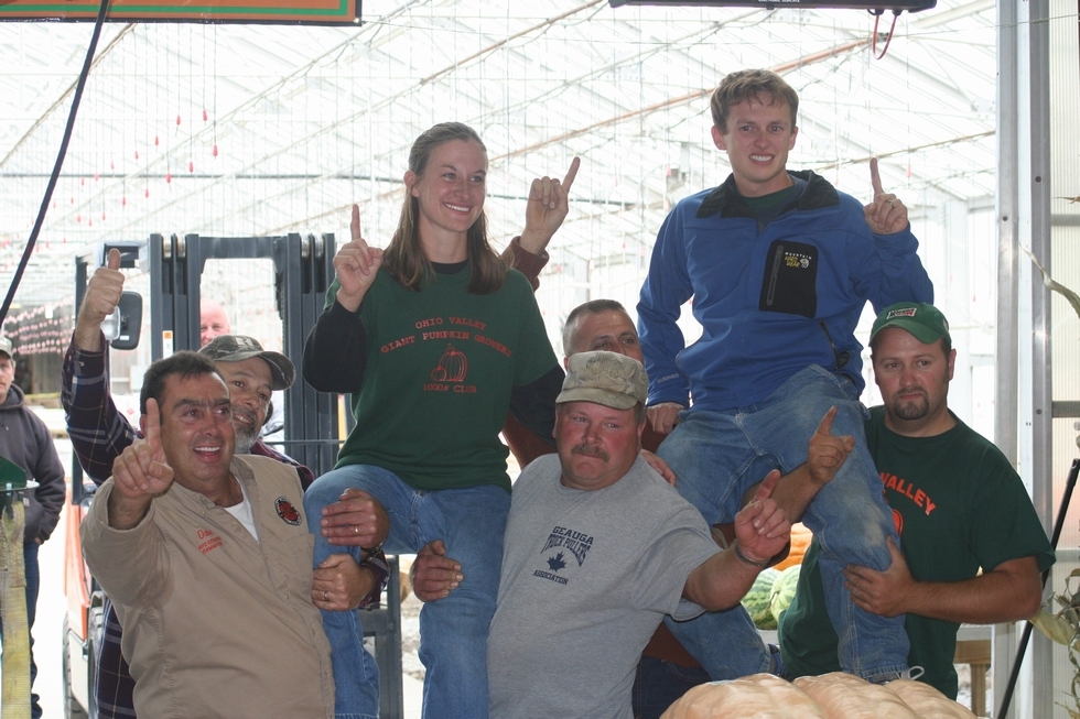 Christy and Nick enjoying the reward of growing the largest pumpkin ever grown.