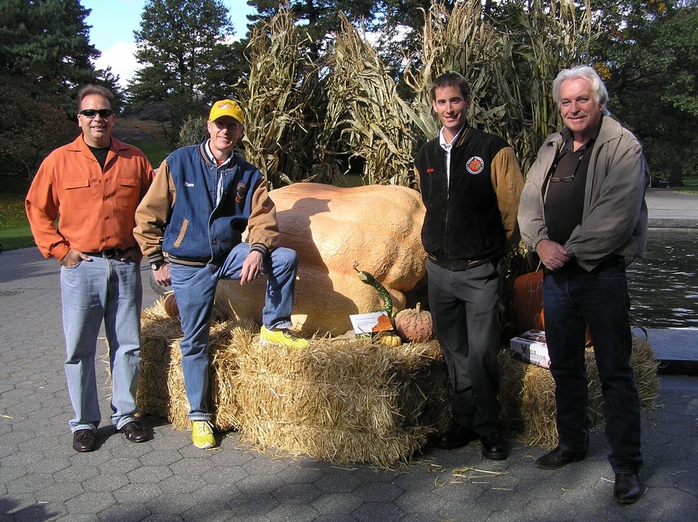 Ron Wallace, Steve Connolly, Chris Stevens and Neil Anderson of RTI at the New York Botanical Gardens with the 1810.5 Stevens world record pumpkin.