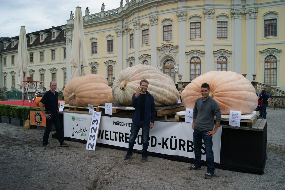 Top 3 pumpkins+growers from the european weigh-off in Ludwigsburg Jos Ghaye, Beni Meier, Janko Lovse