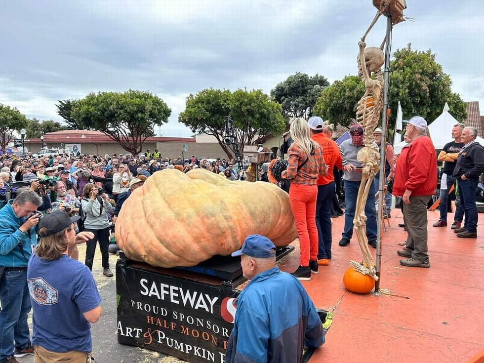Travis Gienger weighed the his new World Record giant pumpkin in Half Moon Bay, CA at the Safeway World Championship, 2749 pounds grown on the 2365 Wolf and sibbed.