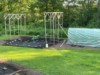 Old patch is starting to get there as well with the hoop on a 400 square foot space and compost on both long gourd trellises. The spot on the right will be finished later and is for the tomato greenhouse.