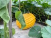 Old patch pumpkin is still plugging along and the long gourds are pollinated.