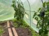 The tomato hut is coming along and does not need the same amount of watering as each plant was planted a foot or more below the surface. This area is also in shade around 3 pm this time of year. A few of the plants are showing females already but we won�t work too hard to pollinate them this early in the season.