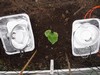 Here is the Pro-mix, heat mat and HPS (High Pressure Sodium) light set-up. This will hold the seeds to get them large enough to know which direction they will vine and build up a good root system before being transplanted outside.