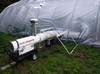 While it may be �warm� now, the weather can quickly change and with a planned early start to the growing season the heating system needed an upgrade from last year. So, the traditional torpedo style heater (in this case the ReddyHeater 200T) is being replaced with the Indirect-Fired Heat Wagon (HVF110).