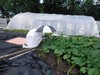While the smaller cold frame and heating cables have already been installed it has been a game of �play the weather� to determine the �best� day to install the plastic to the structure. Well, today at 4:00pm is the time.
