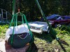 Knowing every pound was needed for a potential personal best, and with a mid-day weigh off the pumpkin was harvested the morning of the event. This required some planning and set-up the day before but everything went as expected. Step one was to remove some of the plant to gain access to the pumpkin. The green trailer (more details on this later) was used to put the plant in so it could be removed from the growing site. Even though there were no major signs of disease or rots, if possible this is a good practice in general.